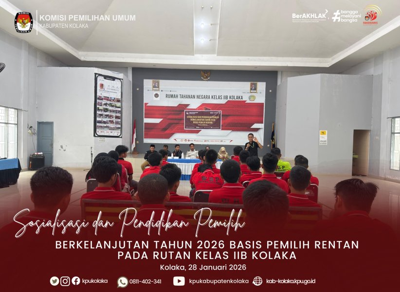 Kolaka, kab-kolaka.kpu.go.id - KPU Kabupaten Kolaka melaksanakan Sosialisasi dan Pendidikan Pemilih berkelanjutan Tahun 2026 basis pemilih rentan pada Rutan Kelas IIB Kolaka dengan peserta warga binaan Rutan kelas IIB Kolaka dan dihadiri oleh Ketua dan anggota KPU Kab.Kolaka, Ketua dan Anggota Bawaslu Kabupaten Kolaka serta jajaran sekretariat KPU dan Bawaslu Kab. Kolaka. Kegiatan ini di buka oleh Bapak Abdul Rahman Selaku Ketua KPU Kabupaten Kolaka dan kemudian pemaparan materi oleh masing-masing Kadiv. dan dilanjutkan oleh ketua Bawaslu Kab.Kolaka. Sosialisasi dan Pendidikan Pemilih Berkelanjutan Tahun 2026 berbasis pemilih rentan merupakan kegiatan yang bertujuan meningkatkan pengetahuan, kesadaran, dan partisipasi politik kelompok masyarakat yang memiliki keterbatasan akses terhadap informasi dan proses kepemiluan. Pemilih rentan meliputi penyandang disabilitas, masyarakat miskin dan marjinal, perempuan kepala keluarga, lanjut usia, komunitas adat dan terpencil, warga binaan pemasyarakatan, pekerja sektor informal, serta masyarakat dengan tingkat literasi rendah. Kegiatan ini dilaksanakan secara berkelanjutan sepanjang tahun 2026 melalui pendekatan komunitas dan metode partisipatif yang disesuaikan dengan karakteristik masing-masing kelompok sasaran. Bentuk kegiatan meliputi sosialisasi tatap muka, diskusi kelompok, kunjungan komunitas, pendidikan sebaya, serta simulasi proses pemungutan dan penghitungan suara. Materi yang disampaikan mencakup hak dan kewajiban pemilih, tahapan pemilu, serta pencegahan politik uang, hoaks, dan intimidasi. Melalui kegiatan ini diharapkan pemilih rentan memiliki pemahaman yang lebih baik tentang kepemiluan, mampu menggunakan hak pilihnya secara bebas dan sadar, serta berpartisipasi aktif dalam proses demokrasi secara inklusif dan bermartabat. (R AL) ....