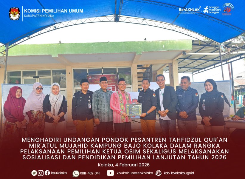 Kolaka, kab-kolaka.kpu.go.id - Komisi Pemilihan Umum (KPU) Kabupaten Kolaka menghadiri undangan Pondok Pesantren Tahfidzul Qur’an Mir’atul Mujahid, Kampung Bajo, Kolaka, pada kegiatan pemilihan Ketua Organisasi Santri Islam (OSIM) yang digelar di lingkungan pesantren tersebut. Kehadiran KPU tidak hanya sebagai tamu undangan, tetapi juga untuk melaksanakan sosialisasi dan pendidikan pemilihan lanjutan tahun 2026, khususnya bagi segmen pemilih pemula. Dalam kegiatan tersebut, proses pemilihan Ketua OSIM menjadi momentum edukasi demokrasi bagi para santri. KPU Kolaka memanfaatkan kesempatan ini untuk memperkenalkan prinsip-prinsip dasar kepemiluan, termasuk pentingnya partisipasi pemilih, tata cara memilih yang benar, serta nilai-nilai kejujuran dan keterbukaan dalam proses pemilihan. Para santri terlihat antusias mengikuti tahapan pemilihan, mulai dari penyampaian visi-misi calon hingga proses pencoblosan. KPU Kolaka berharap pengalaman langsung melalui pemilihan OSIM ini dapat menjadi sarana pembelajaran praktis bagi para pemilih pemula menjelang pelaksanaan tahapan Pemilu/Pilkada 2026 mendatang. Dengan kegiatan ini, KPU Kolaka menegaskan komitmennya untuk terus memperluas jangkauan sosialisasi kepada generasi muda, termasuk di lingkungan pesantren, agar pemilih pemula memiliki pemahaman yang memadai dan dapat berpartisipasi secara bertanggung jawab dalam pesta demokrasi yang akan datang. ....