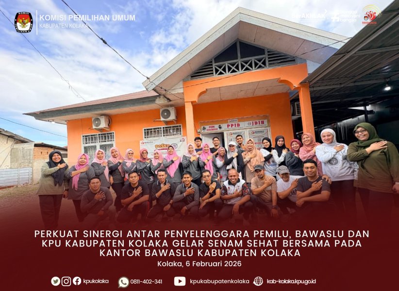 Kolaka, kab-kolaka.kpu.go.id - Komisi Pemilihan Umum (KPU) Kabupaten Kolaka bersama Badan Pengawas Pemilu (Bawaslu) Kabupaten Kolaka menggelar kegiatan senam sehat bersama di halaman Kantor Bawaslu Kabupaten Kolaka, Kamis (6/2/2026). Kegiatan ini bertujuan memperkuat sinergi antarpenyelenggara pemilu menjelang pelaksanaan tahapan Pemilu serentak. Senam sehat yang diikuti oleh jajaran sekretariat, staf, dan komisioner dari kedua lembaga tersebut berlangsung dalam suasana penuh keakraban. Para peserta terlihat antusias mengikuti gerakan senam yang dipandu instruktur, sekaligus memanfaatkan momentum tersebut sebagai sarana mempererat hubungan kerja. Ketua KPU Kabupaten Kolaka menegaskan pentingnya kolaborasi antara KPU dan Bawaslu untuk memastikan setiap tahapan pemilu berjalan baik, profesional, dan sesuai ketentuan. Ia berharap kegiatan seperti ini dapat meningkatkan kekompakan dan komunikasi antarinstansi. Sementara itu, pimpinan Bawaslu Kabupaten Kolaka menyampaikan bahwa sinergi yang dibangun tidak hanya sebatas koordinasi teknis, tetapi juga melalui kegiatan informal yang memperkuat soliditas demi menjaga kualitas pengawasan dan penyelenggaraan pemilu. Kegiatan ditutup dengan sesi foto bersama seluruh peserta sebagai simbol komitmen kedua lembaga dalam menjaga integritas dan suksesnya penyelenggaraan pemilu di Kabupaten Kolaka. ....
