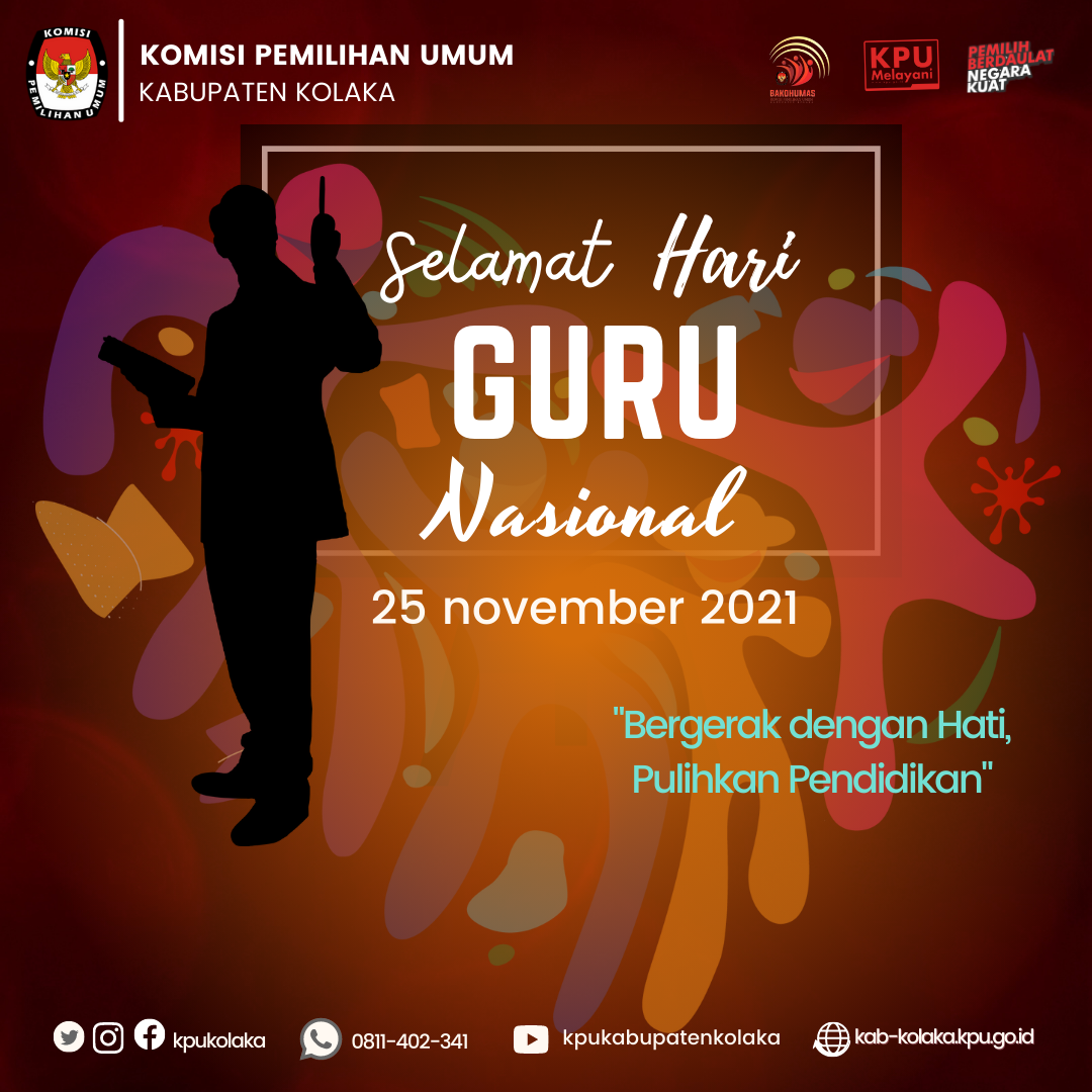 Segenap Jajaran KPU Kabupaten Kolaka Mengucapkan Selamat Memperingati Hari Guru Nasional tanggal 25 November 2021.
